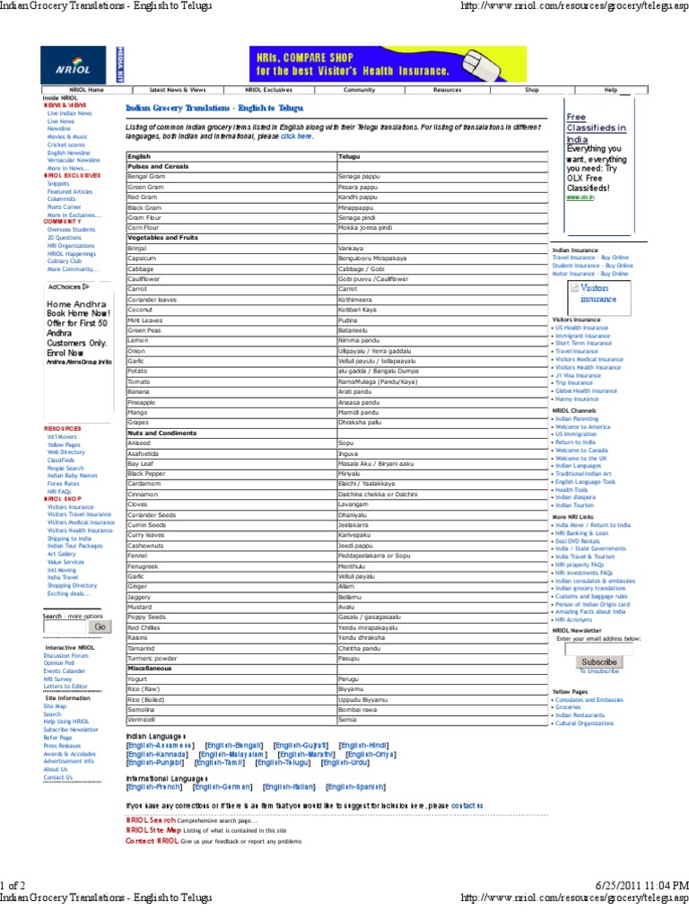 Indian Grocery Translations Telugu Curry Cuisine - All types of grocery and cosmetics items available under one store.