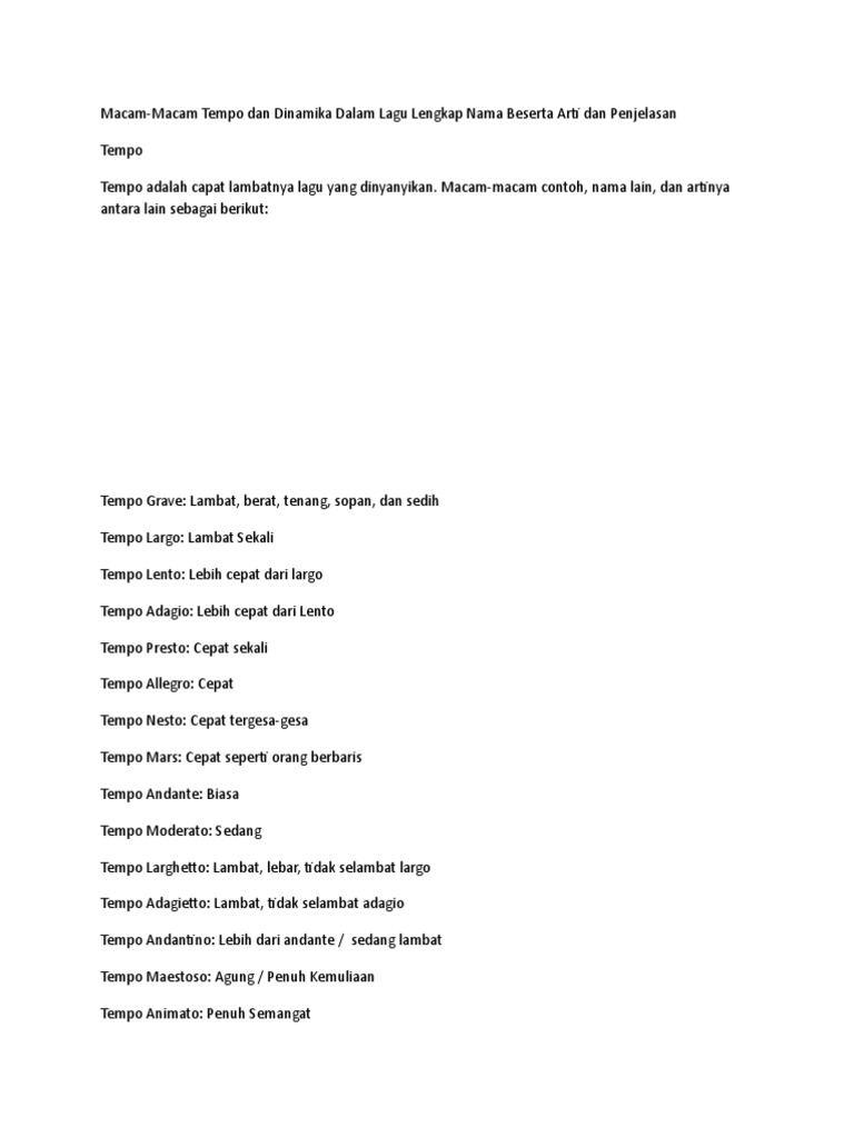 Macam Macam Tempo Dalam Musik Lagu Ezy Blog - Bu bicimde calinan muezik parcasi.