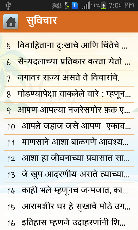 - This app provide you the different categories of 'marathi quote' or 'marathi suvichar' and good thought in marathi share these heart touching lines of suvichar with your friends or loved ones or in your circle through which one.