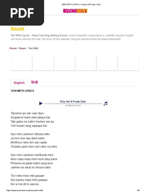 Teri Mitti Lyrics With Translation Kesari Akshay Kumar Parineeti Chopra B Praak Arko Youtube - Gaana offers you free, unlimited access to over 30 million hindi songs, bollywood music, english mp3 songs.